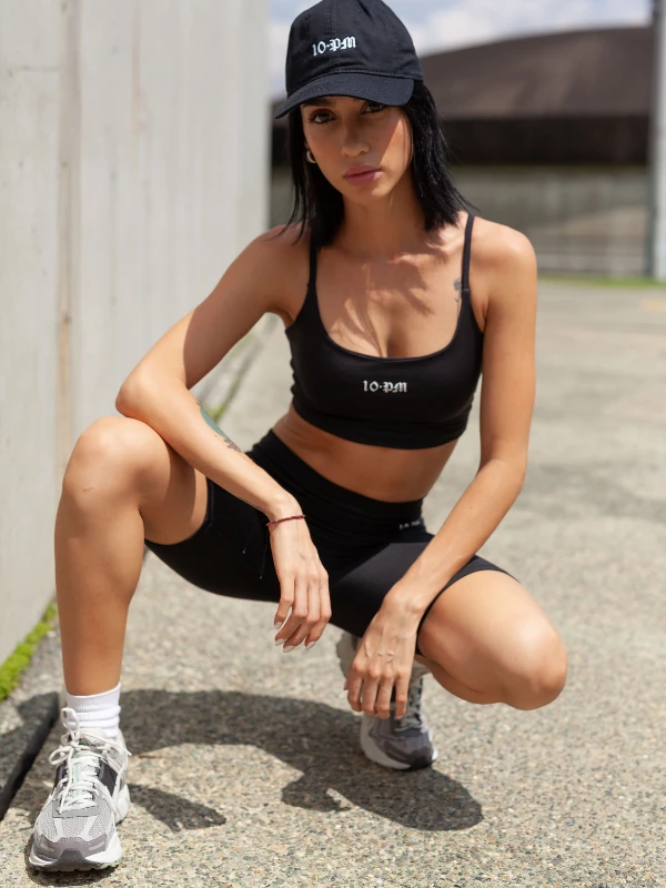Set de top básico y biker, elaborados en lycra, con logo estampado en vinilo