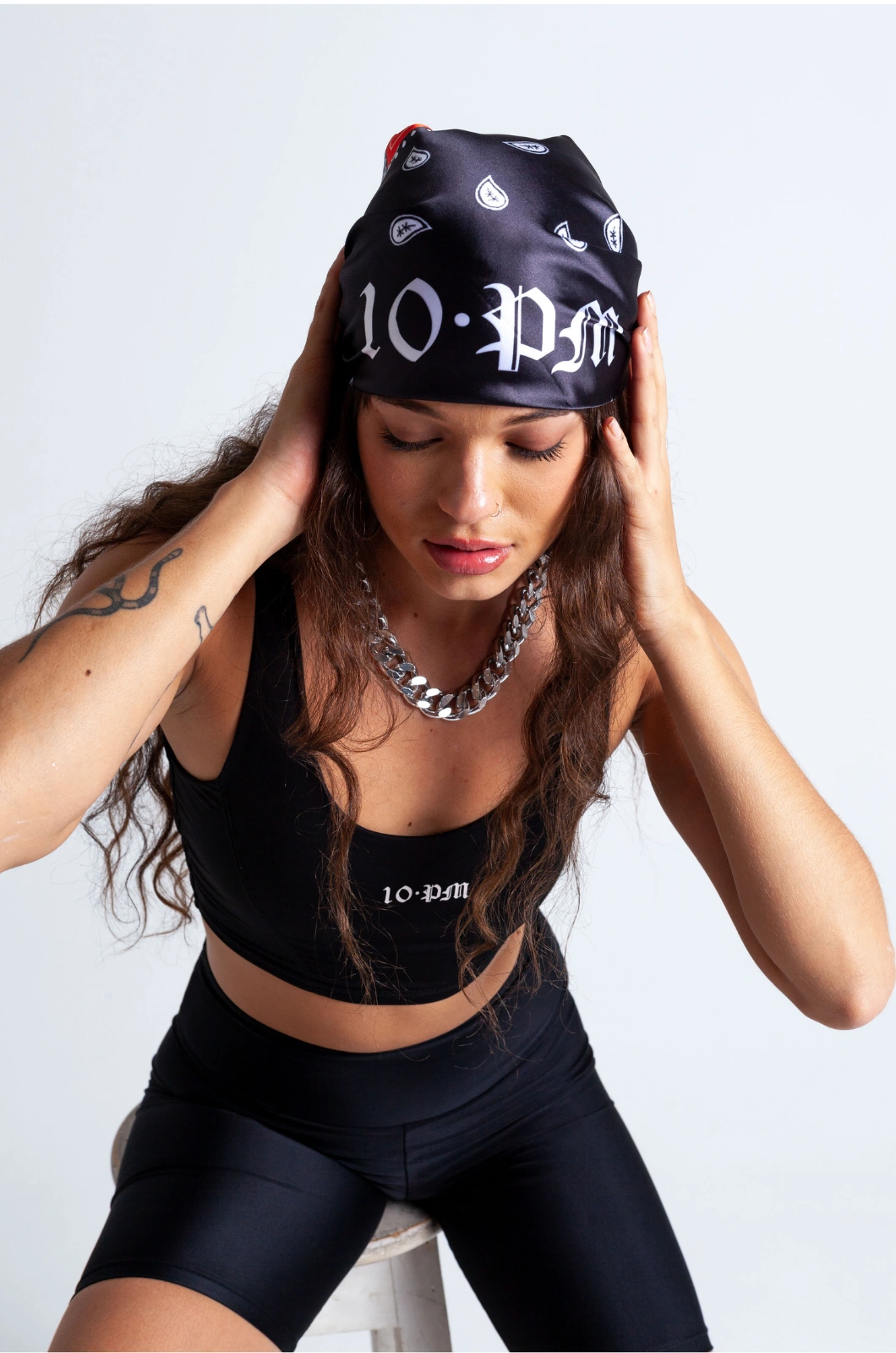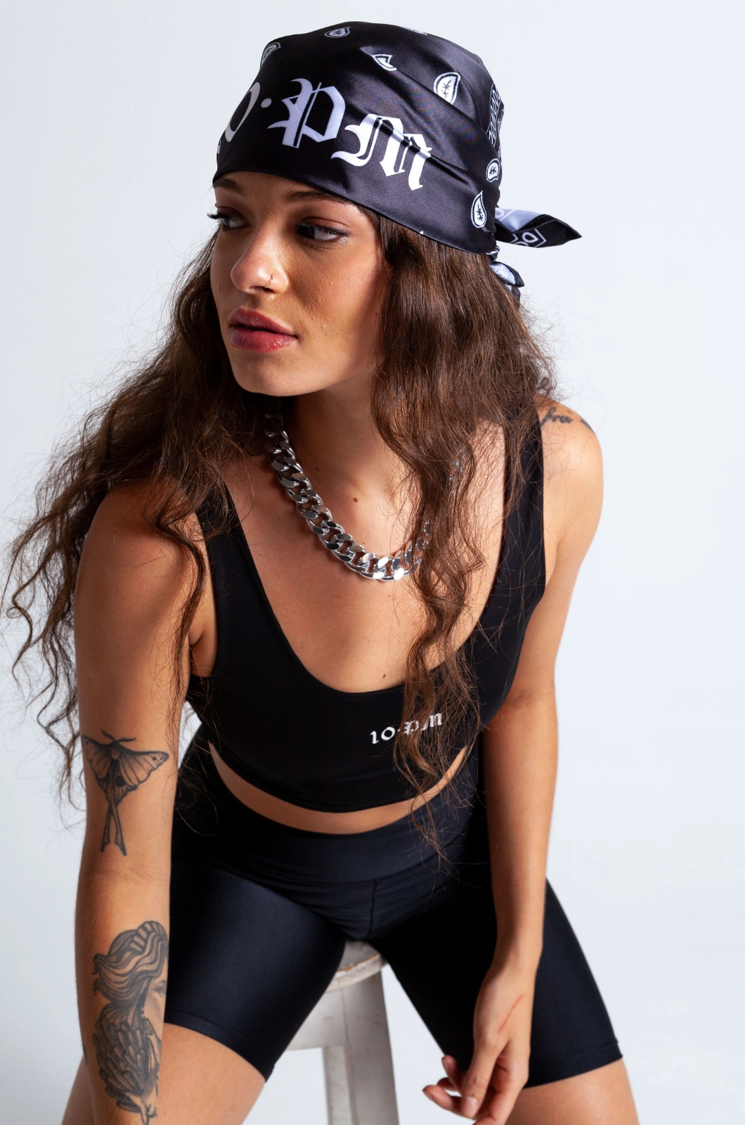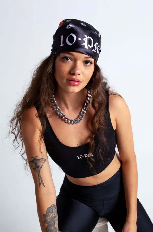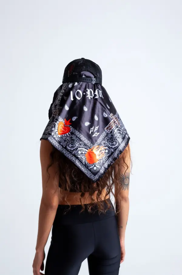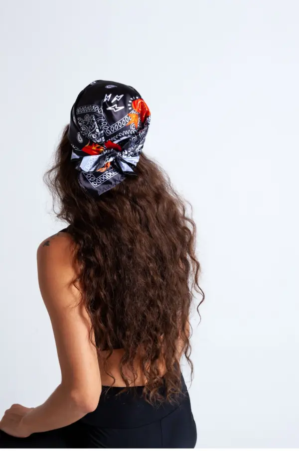 Pañoleta en Satin lycrado, estampada en sublimación con diseño exclusivo de la marca.