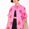 Camisa de botones ligera, en seda mango , con estampado en sublimación con diseño exclusivo de la marca y botones delanteros.