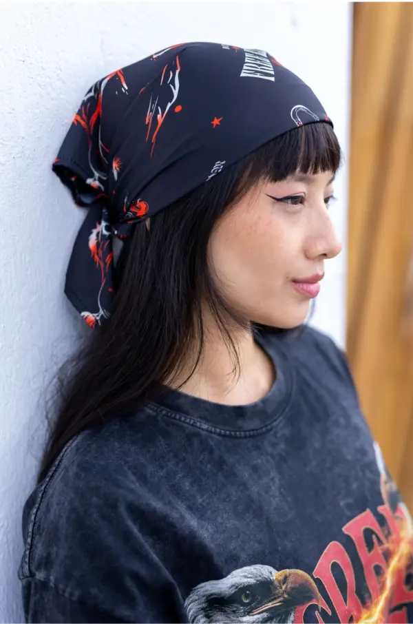 Pañoleta en Satin lycrado, estampada en sublimación con diseño exclusivo de la marca.