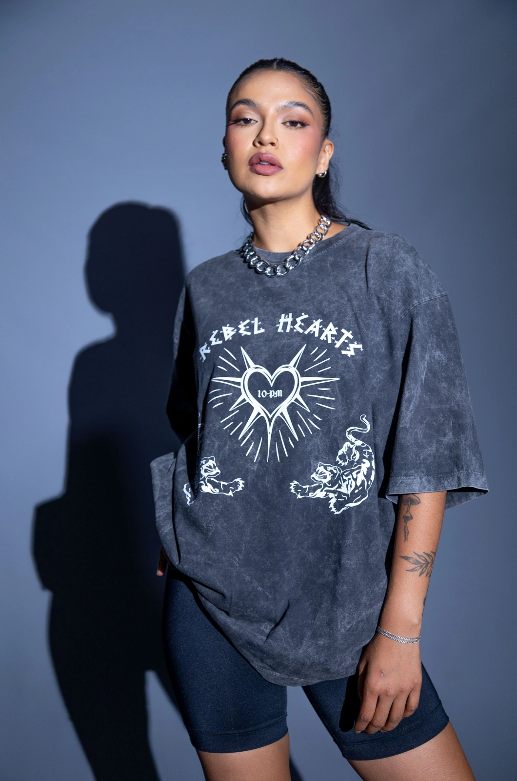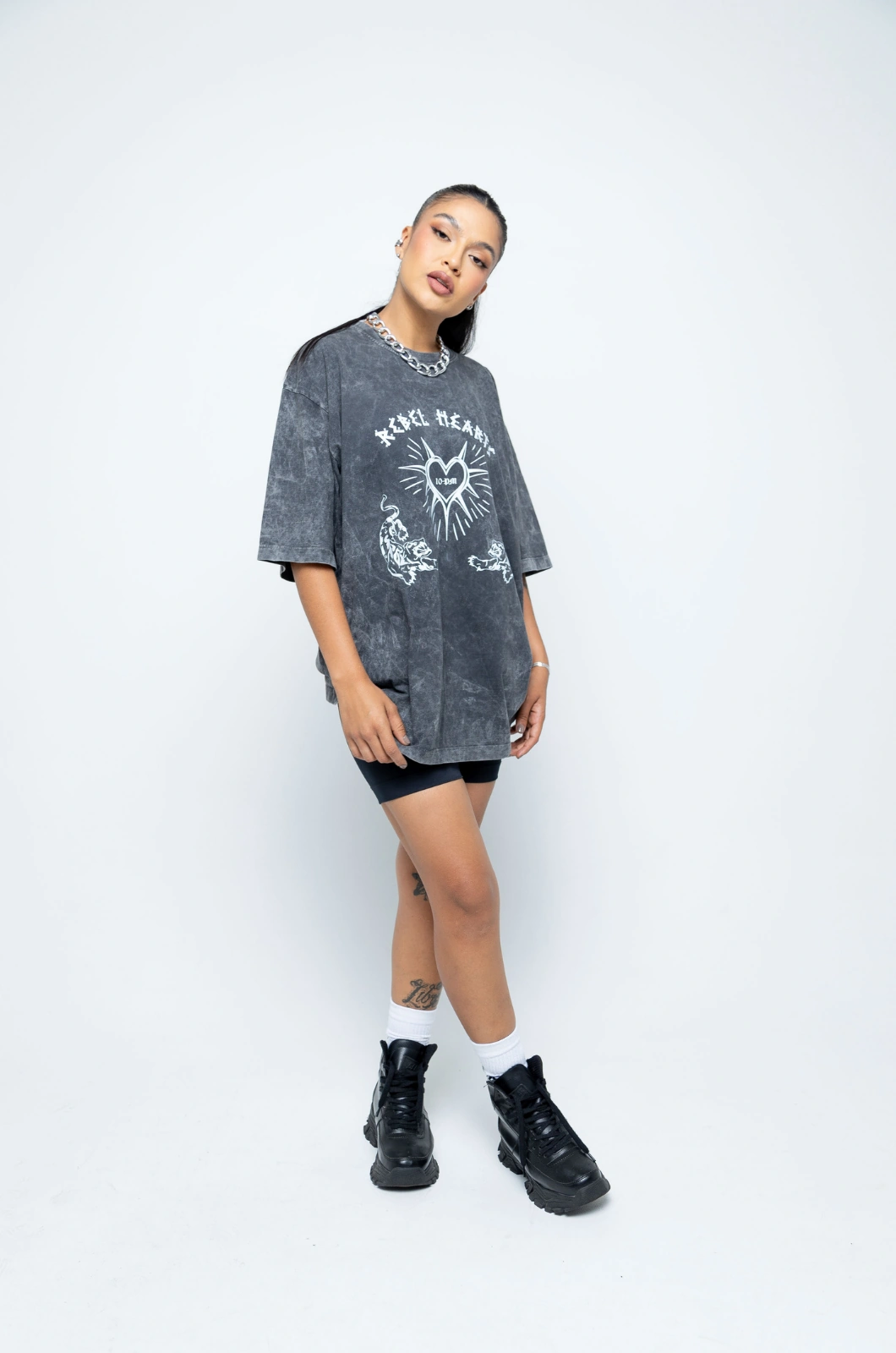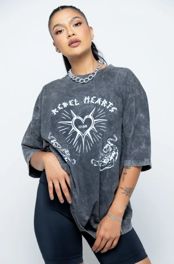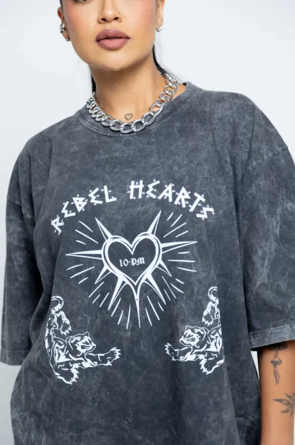 Camiseta en 100% algodón, con acabado acid wash, cuello redondo y con estampado en vinilo en frente.
