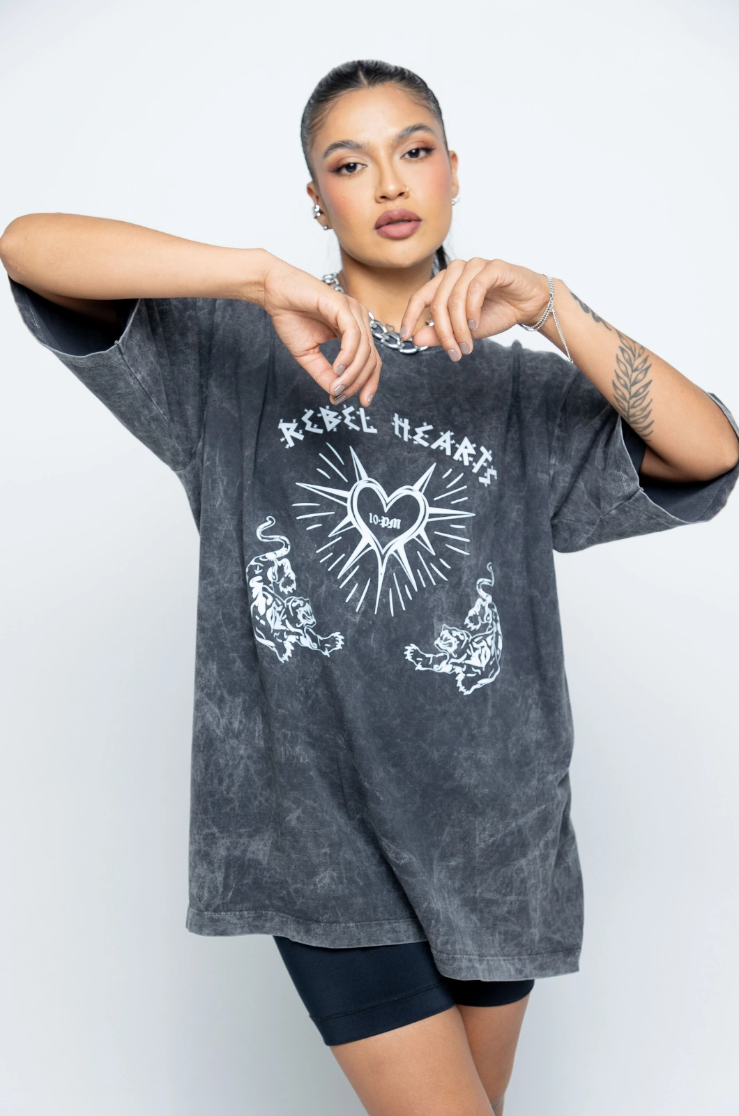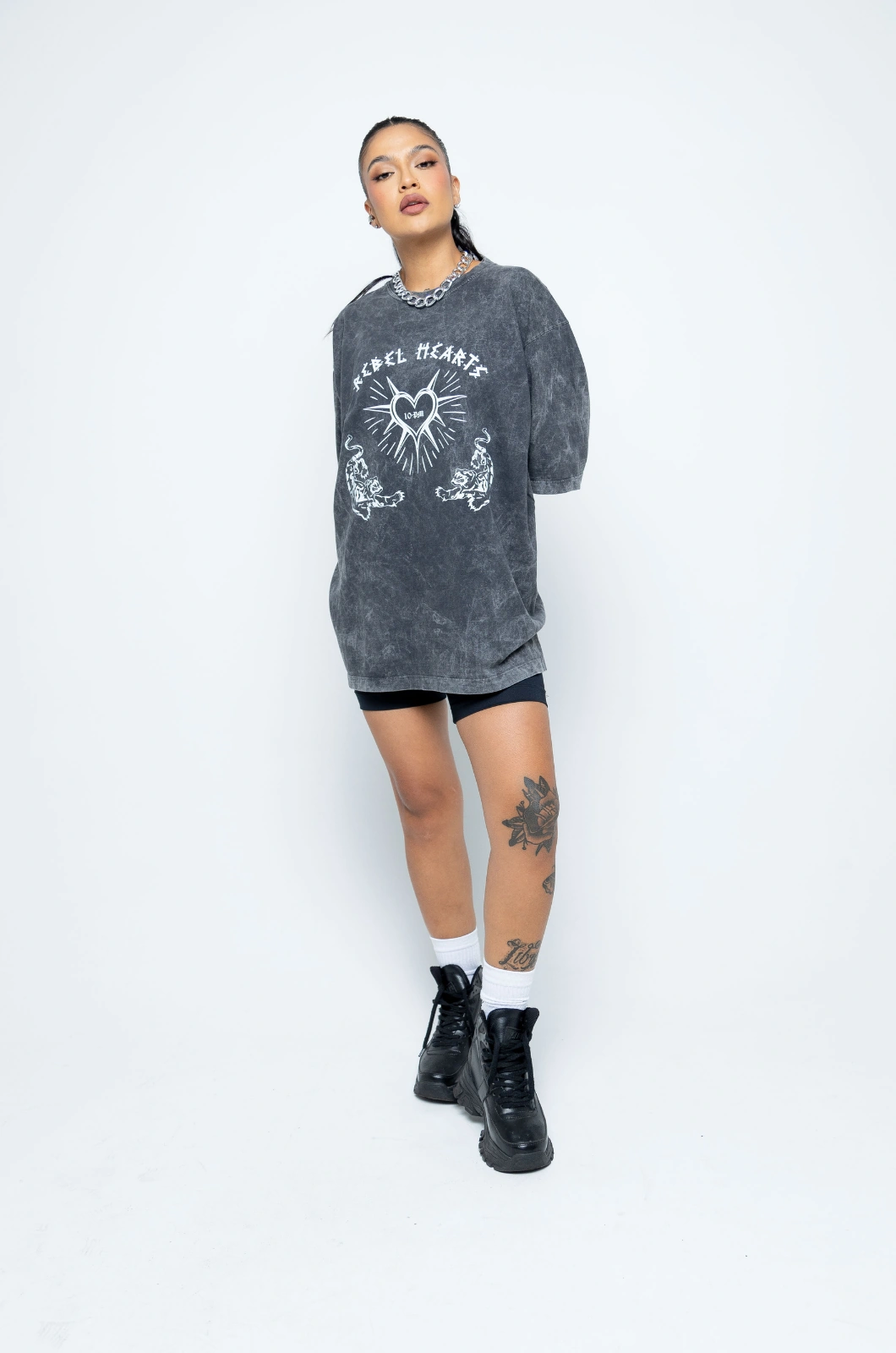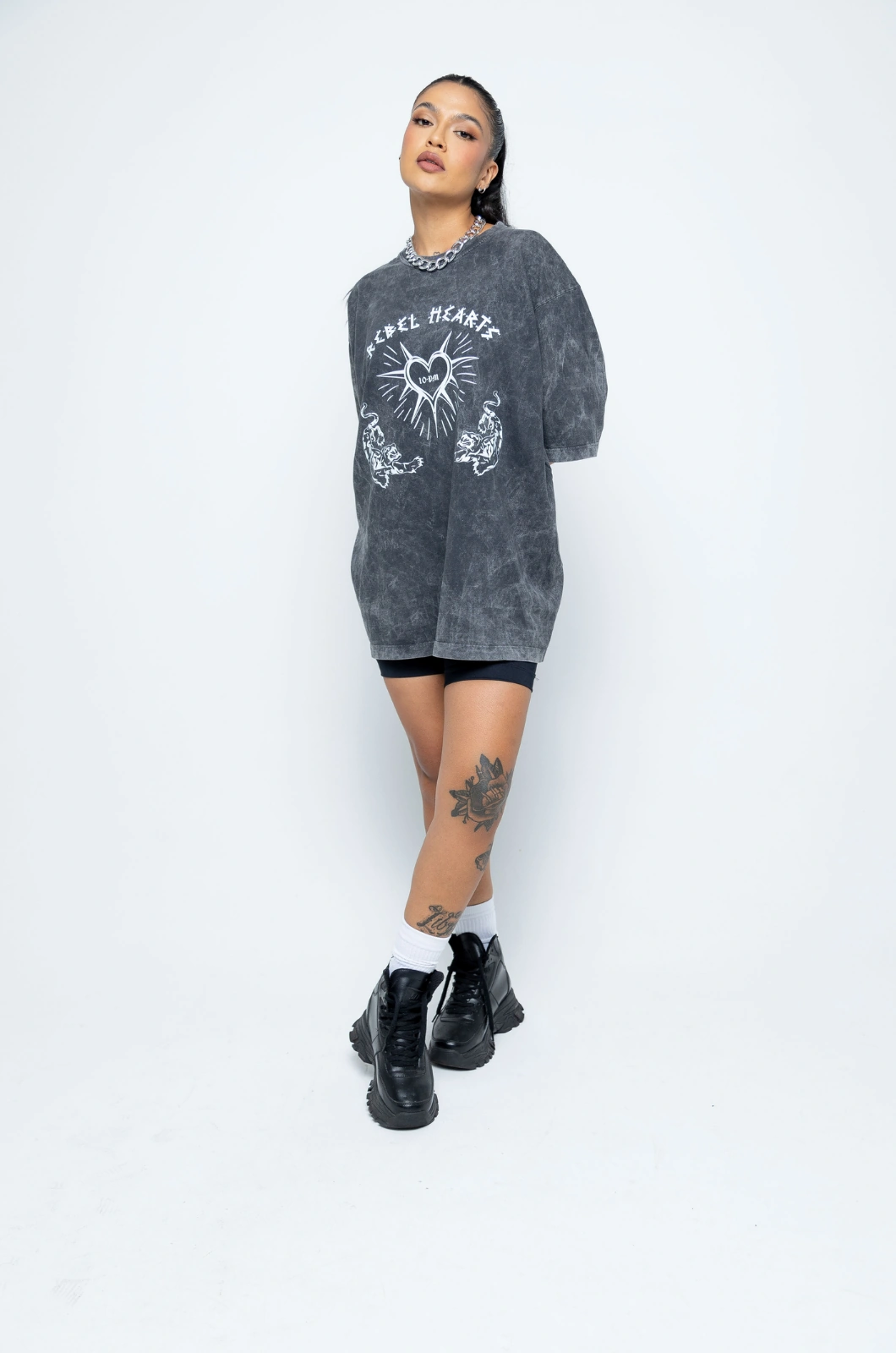 Camiseta en 100% algodón, con acabado acid wash, cuello redondo y con estampado en vinilo en frente.